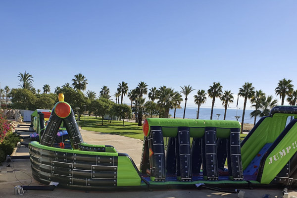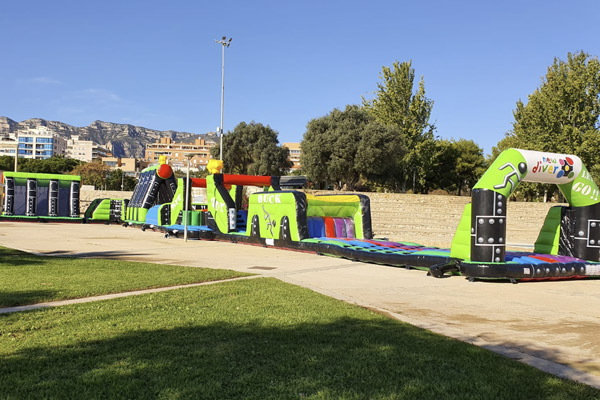 – Primera planta: Ludoteca pels mes menudets (piscina de boles, jocs de rol, tobogans, inflables, figures de goma escuma…) Com a novetat hi ha circuit de seguretat vial amb cotxes caminadors.